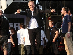 Herbert Grönemeyer, Hauptinitiator des Konzerts, ruft: "Angela Merkel hat ein Versprechen gegeben und hat es gefälligst einzulösen!"